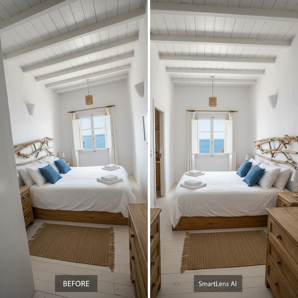 Pixelated → HD: AI Upscale για Airbnb στη Νάξο — +40% κρατήσεις