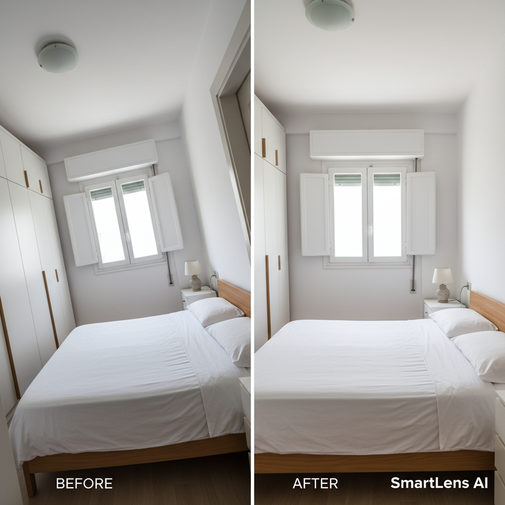 Το SmartLens.gr αναγνωρίζει αυτόματα τις παραμορφώσεις και μετατρέπει «στραβές» λήψεις σε ευθείες, αρμονικές φωτογραφίες. Το AI μας διορθώνει τις γωνίες, ευθυγραμμίζει τους τοίχους και επαναφέρει σωστή γεωμετρία χωρίς να θυσιάζει φυσικότητα. Η υπηρεσία υποστηρίζει τον host με: