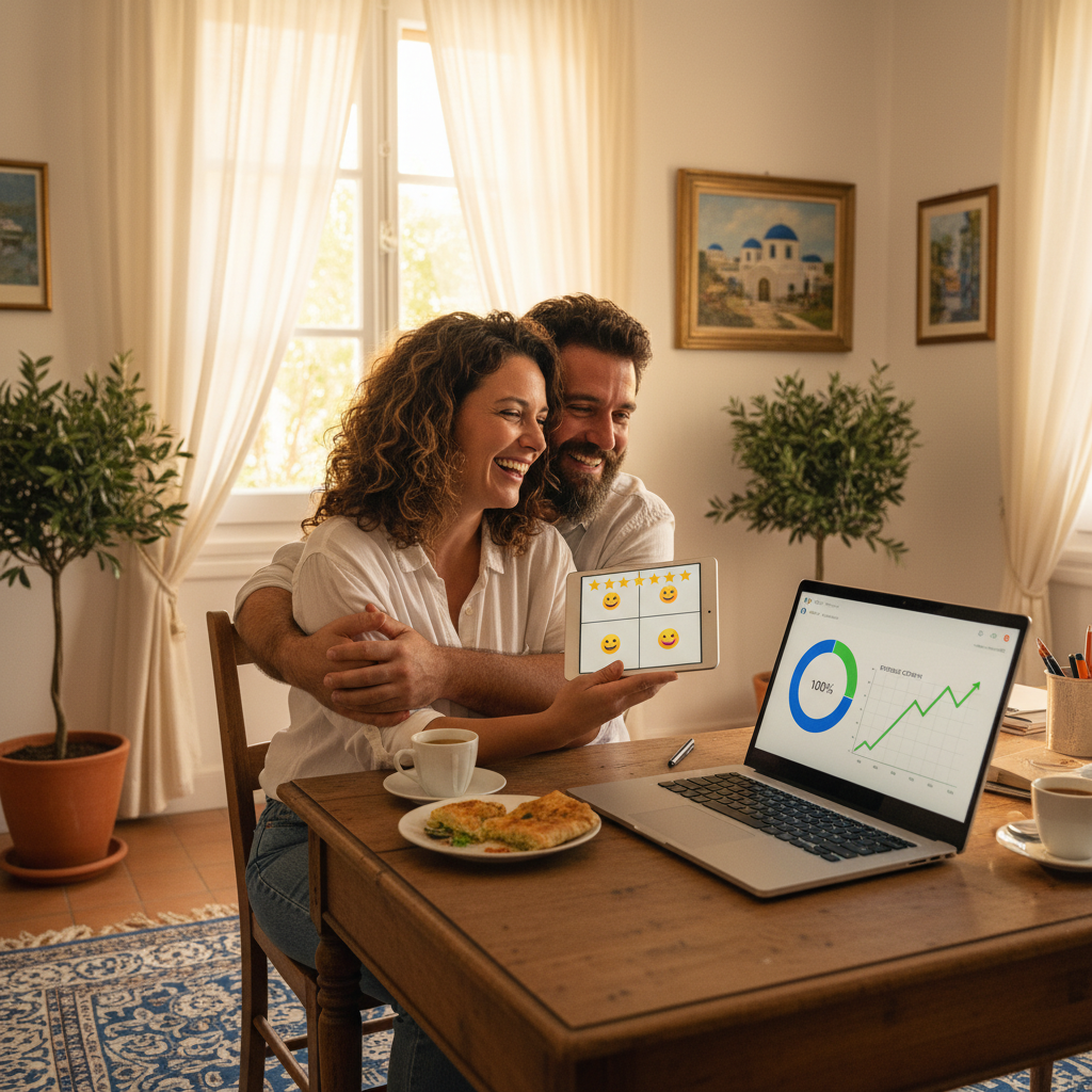 Ιδιοκτήτης boutique διαμερίσματος στην Παλιά Πόλη του Ναυπλίου είχε manual sync σε 3 κανάλια, ~62% πληρότητα και 2 διπλοκρατήσεις/μήνα. Με onboarding στο SmartBNB, ενεργοποιήσαμε Airbnb, Booking, Expedia + 50+ άλλα, AI pricing και unified calendar. Σε 90 ημέρες: 95% πληρότητα, +30-50% extra κρατήσεις, €2,400+ μηνιαία μέση απόδοση και εβδομαδιαίες πληρωμές. Καλύψαμε low-season κενά και προστατέψαμε high-demand Σαββατοκύριακα. Όλα με 100% performance guarantee.