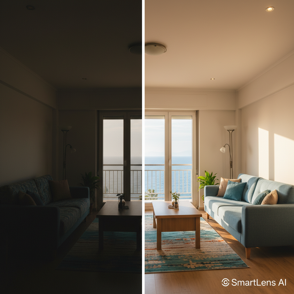 Σκοτεινές Φωτογραφίες = Λιγότερες Κρατήσεις Το 67% των επισκεπτών στο Airbnb αποφασίζουν μέσα σε λίγα δευτερόλεπτα αν θα συνεχίσουν στο listing σου. Ένα σκοτεινό σαλόνι ή underexposed interior image μπορεί να ακυρώσει ακόμα και τέλεια reviews. Το SmartLens μετατρέπει underexposed εσωτερικά σε φωτεινά, welcoming spaces — δείτε ένα χαρακτηριστικό Dark…