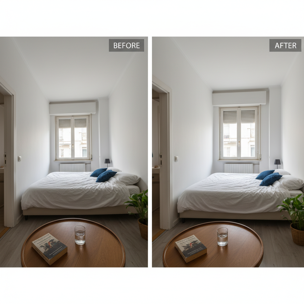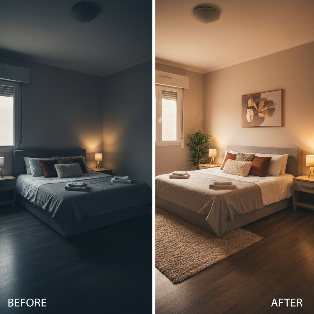 Σκοτεινές Φωτογραφίες = Λιγότερες Κρατήσεις Ένα penthouse στη Θεσσαλονίκη με φοβερή θέα μπορεί να χάσει επισκέπτες αν οι φωτογραφίες του είναι σκοτεινές. Το κοινό scrollάρει γρήγορα και ένα υποεκτεθειμένο υπνοδωμάτιο δίνει την αίσθηση «κρύο, άβολο, μη επαγγελματικό». Στην περίπτωση before/after split, η αλλαγή από «Dark to Cozy – Bedroom Lighting»…