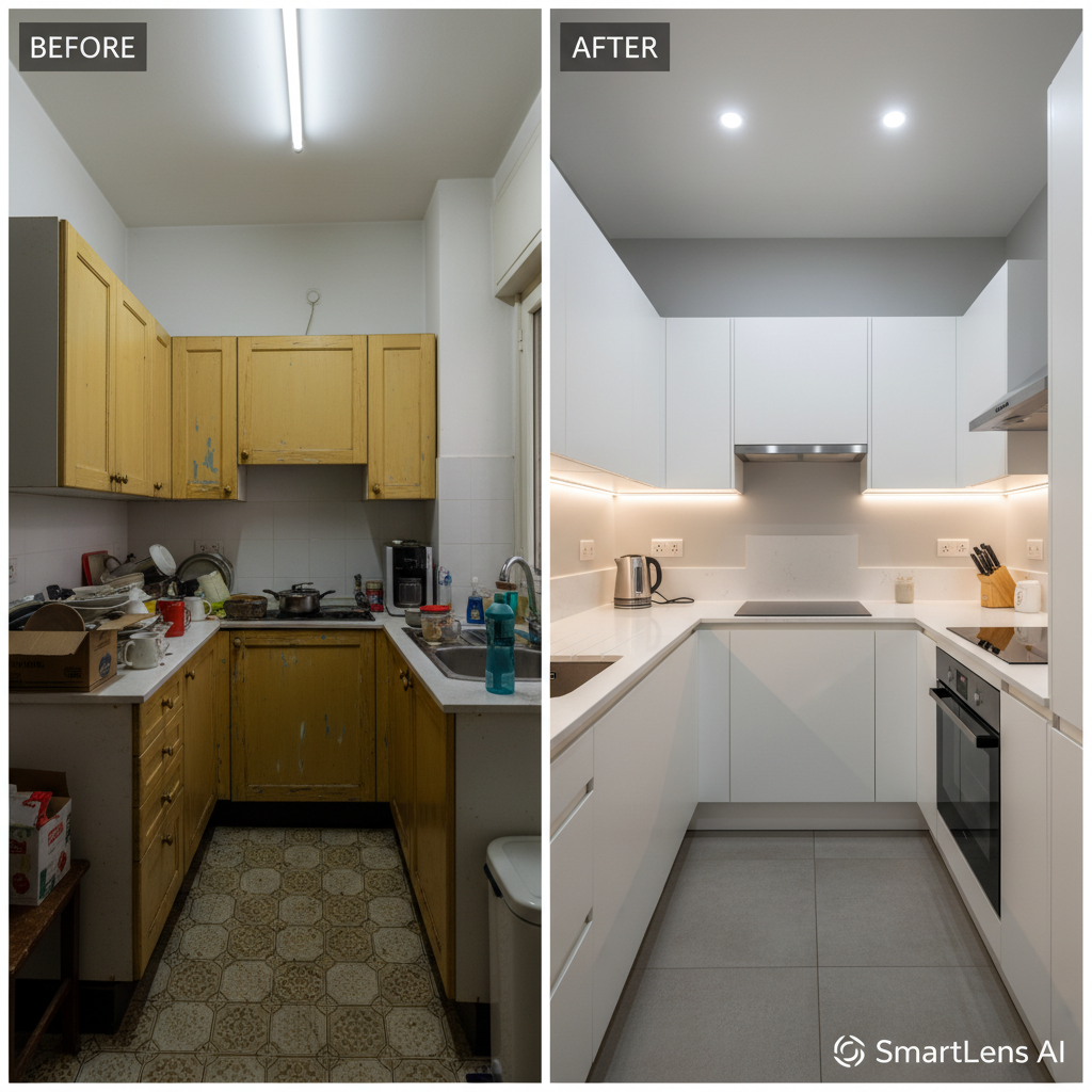 Σκοτεινή κουζίνα = Χαμένες κρατήσεις στο Athens Center Ένα traditional house στο Athens Center με υπέροχη κουζίνα μπορεί να φαίνεται φτωχό σε εικόνες: σκοτειοί πάγκοι, κρύες αποχρώσεις, ανεπιθύμητες αντανακλάσεις και στενές γωνίες που μικραίνουν το χώρο. Το αποτέλεσμα; Επισκέπτες που σκρολάρουν και δεν κλείνουν. Το SmartLens μετατρέπει αυτές τις amateur…