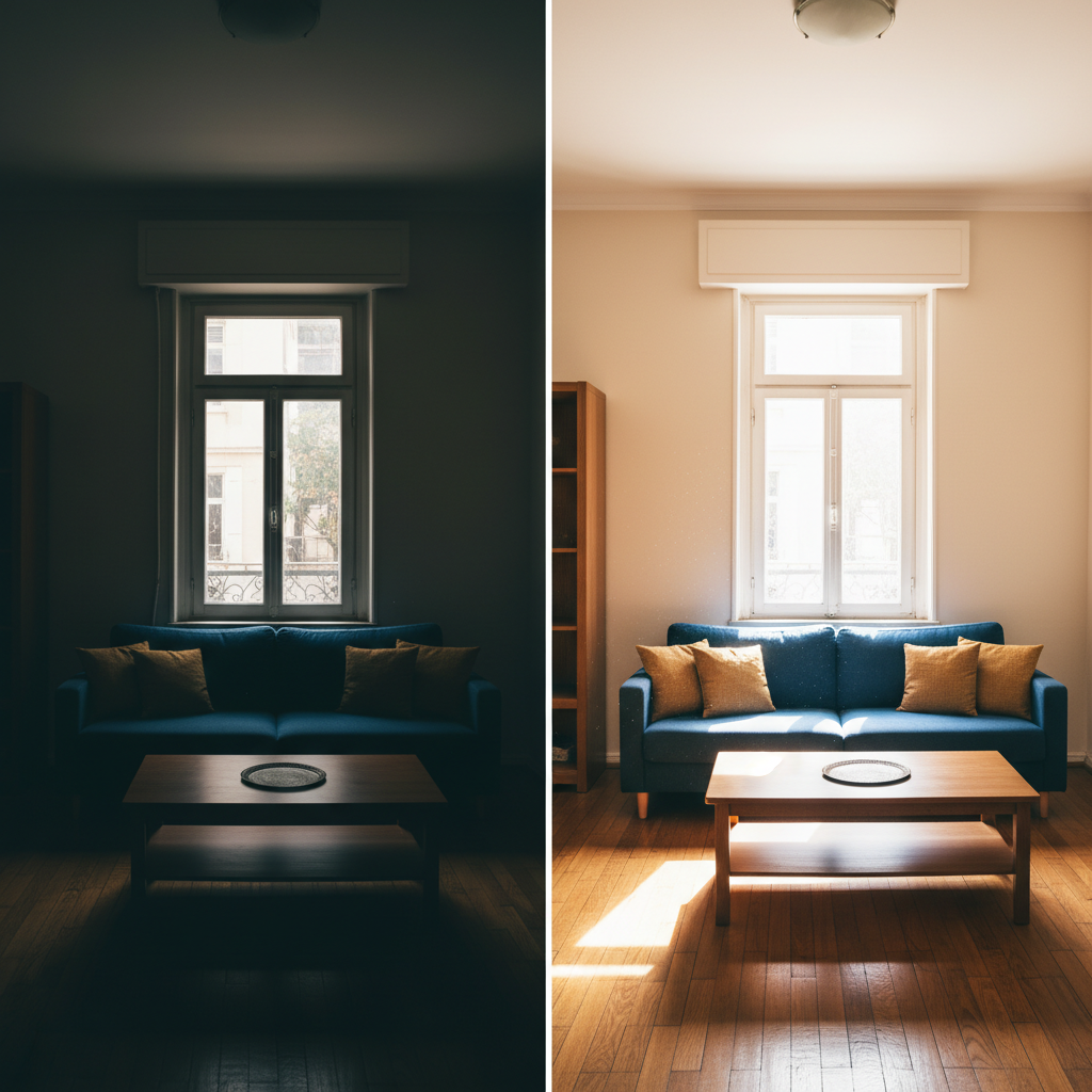 Σκοτεινές Φωτογραφίες = Λιγότερες Κρατήσεις Το 67% των επισκεπτών στο Airbnb προσπερνάει listings με σκοτεινές, underexposed εικόνες. Για ένα traditional house στο κέντρο της Ζακύνθου, ένα σκοτεινό σαλόνι μπορεί να σημαίνει απώλεια κρατήσεων και χαμηλότερες τιμές. Το SmartLens μετατρέπει αυτές τις φωτογραφίες με Dark to Bright Interior – Living Room…