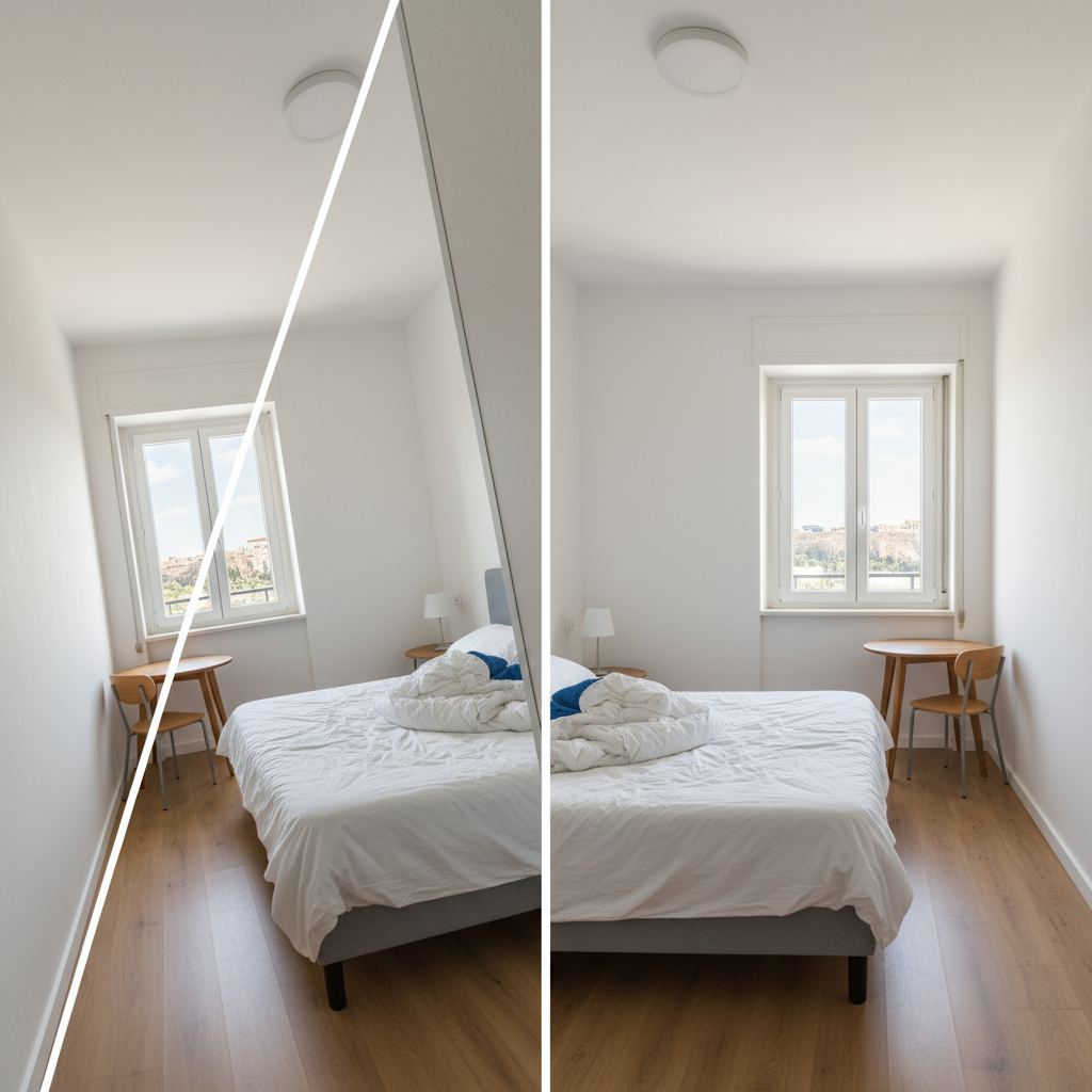 Στραβές Γωνίες = Unprofessional Listing; Crooked to Straight Όταν οι τοίχοι, οι πόρτες και οι οριζόντιες γραμμές φαίνονται «στραβές», ακόμα και το πιο όμορφο traditional house στο Κολωνάκι χάνει αξιοπιστία. Οι επισκέπτες δεν εμπιστεύονται listings που δείχνουν παραμορφωμένα: οι φωτογραφίες με λανθασμένη προοπτική δίνουν αίσθηση μικρού, στριμωγμένου χώρου και φτηνής…