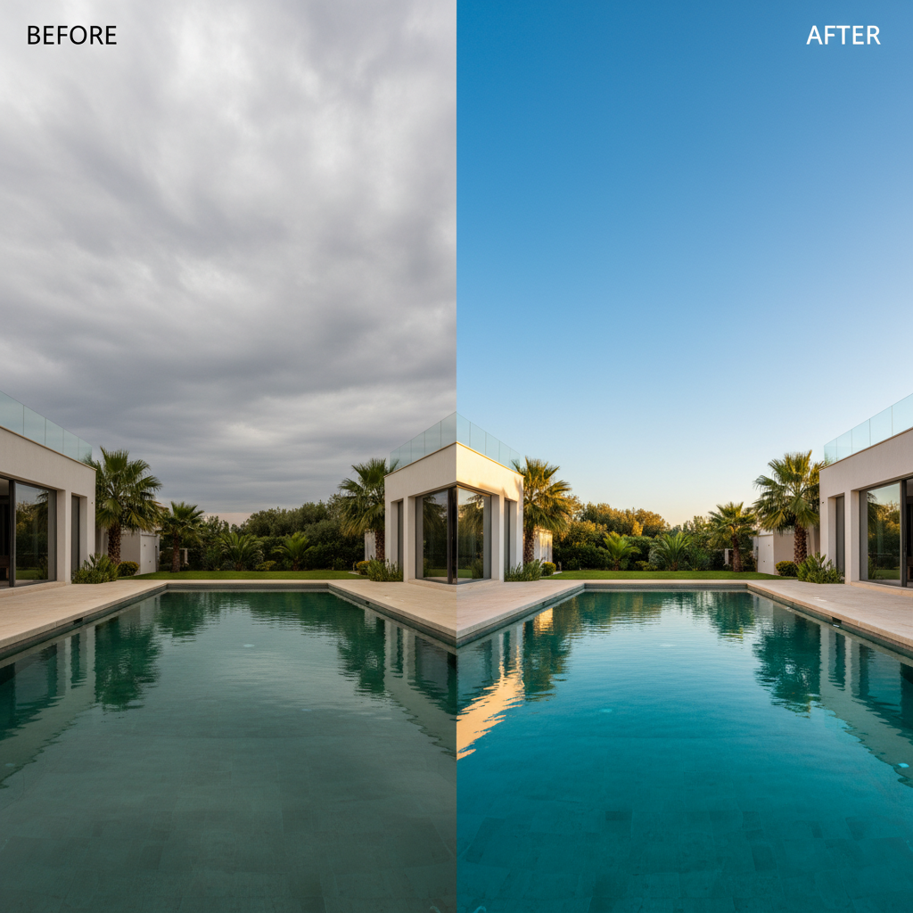Γκρίζος Ουρανός Σκοτώνει το Outdoor Appeal Μια έξω φωτογραφία με συννεφιά μπορεί να μειώσει δραματικά το ενδιαφέρον για ένα luxury suite στο Thessaloniki. Πισίνα με γκρίζο φόντο φαίνεται λιγότερο δελεαστική, μπαλκόνια και open terraces χάνουν το μεσογειακό τους χαρακτήρα. Το SmartLens αντιμετωπίζει αυτό το πρόβλημα με στόχο να μετατρέψει πραγματικά…