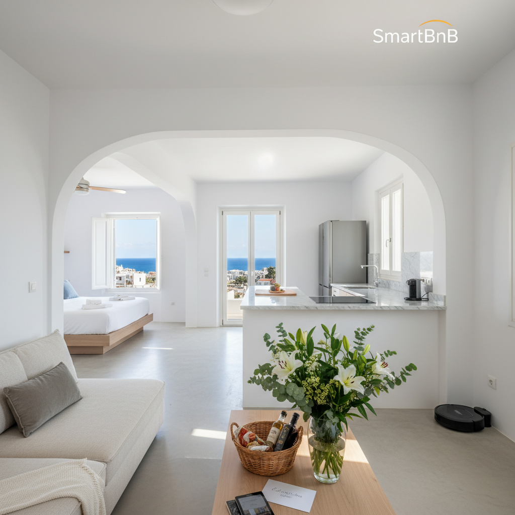 Check-in/check-out αυτοματοποίηση SmartBnB στη Mykonos Town με επαγγελματική καθαριότητα και full service Στη Mykonos Town, όπου οι πτήσεις και τα ferries αλλάζουν τελευταία στιγμή και οι αφίξεις «σκάνε» μετά τα μεσάνυχτα, το check-in και check-out μπορεί να γίνει εφιάλτης. Κλειδιά που χάνονται, ουρές έξω από το διαμέρισμα, καθαρισμοί που συμπιέζονται…
